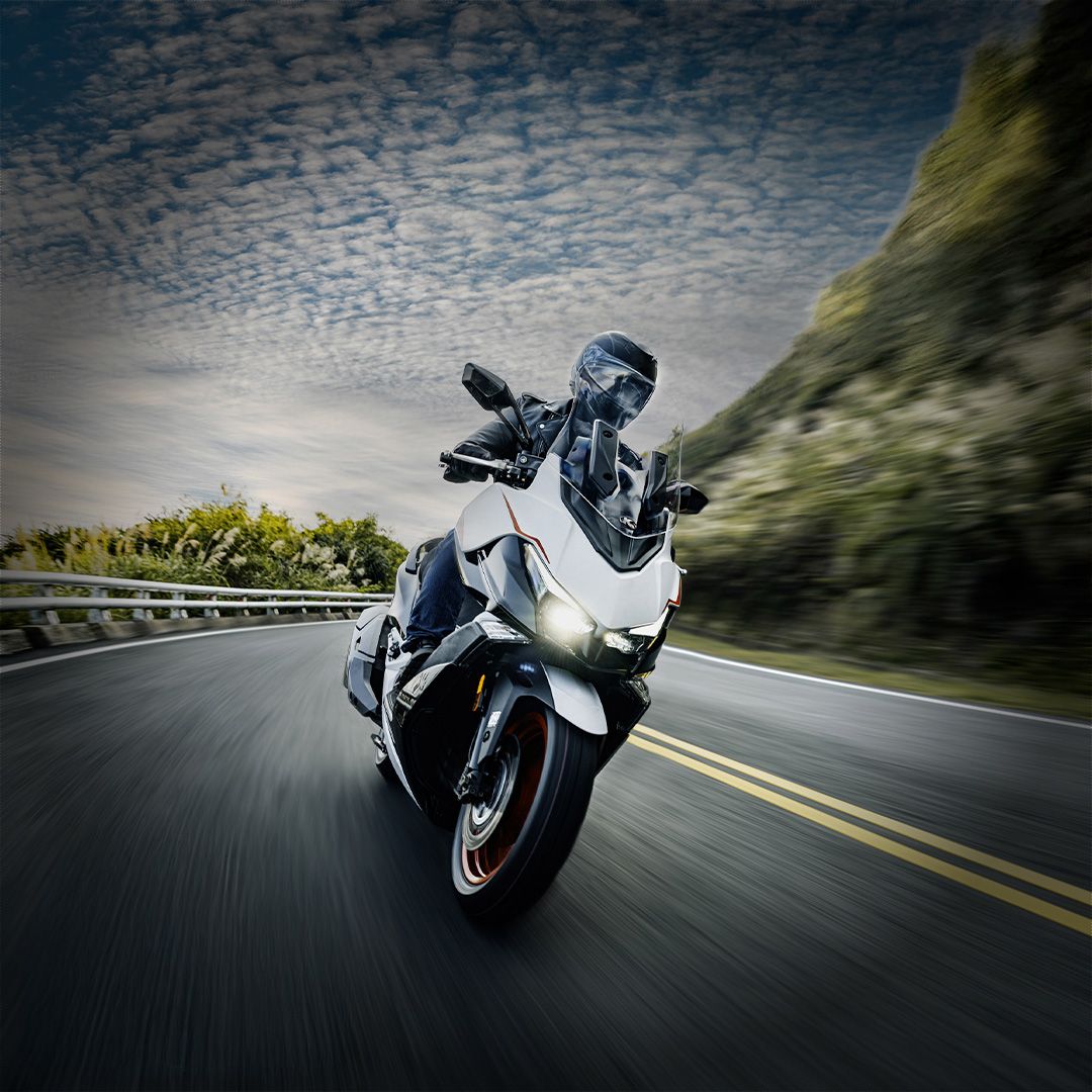 Premier scooter de sa catégorie à être équipé d'un moteur bicylindre, le Kymco CV3 vous accompagne au quotidien pour vous faufiler partout en ville et prendre du plaisir sur toutes les routes. Prenez la route avec le Kymco CV3 et profitez du confort et de la praticité du sccoter 3 roues.